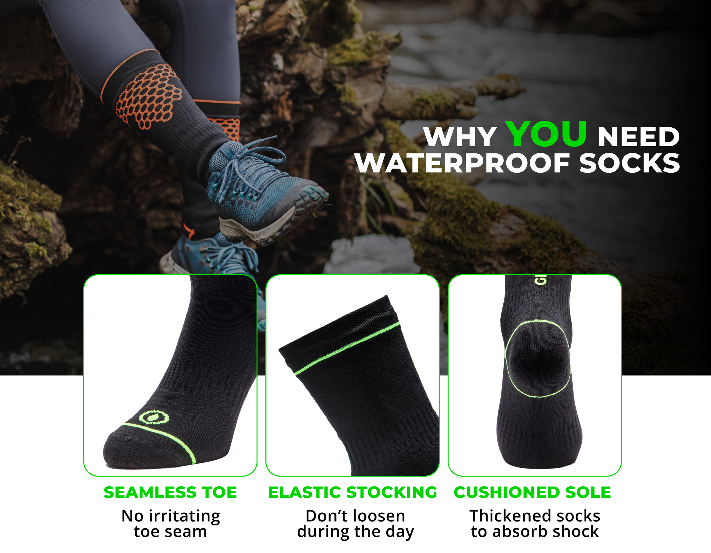 Our 1 Year Guarantee is there for your peace of mind. If within the year the socks fail to keep your feet dry, we will happily send out another pair.